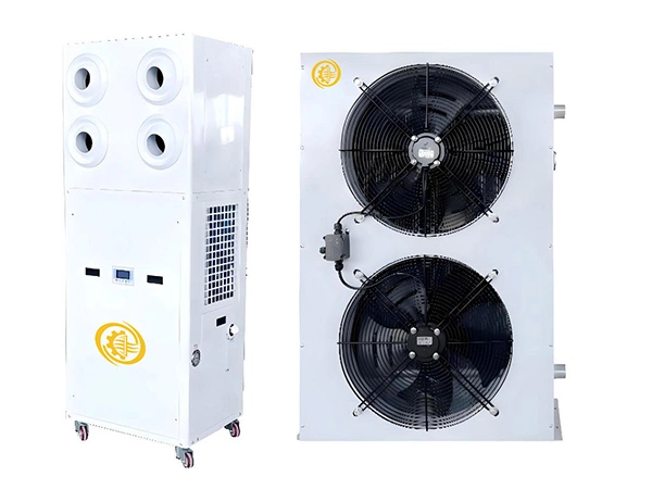 | Vantagens e desvantagens | Cada ar condicionado é controlado separadamente, área de cobertura pequena e eficiência de resfriamento. | A eficiência de resfriamento é boa, mas não pode ser controlada separadamente, o custo do investimento é alto | O climatizador de ar resfria rapidamente e consome relativamente pouca energia. No entanto, o efeito de resfriamento é limitado pela temperatura e umidade externas. O efeito de resfriamento é fraco em altas temperaturas e clima úmido, e o custo de instalação é relativamente alto. | A eficiência de resfriamento é boa, grande área de cobertura, pode ser controlado separadamente, custo de investimento comparativamente baixo, mas exige um requisito sobre a qualidade da água. |